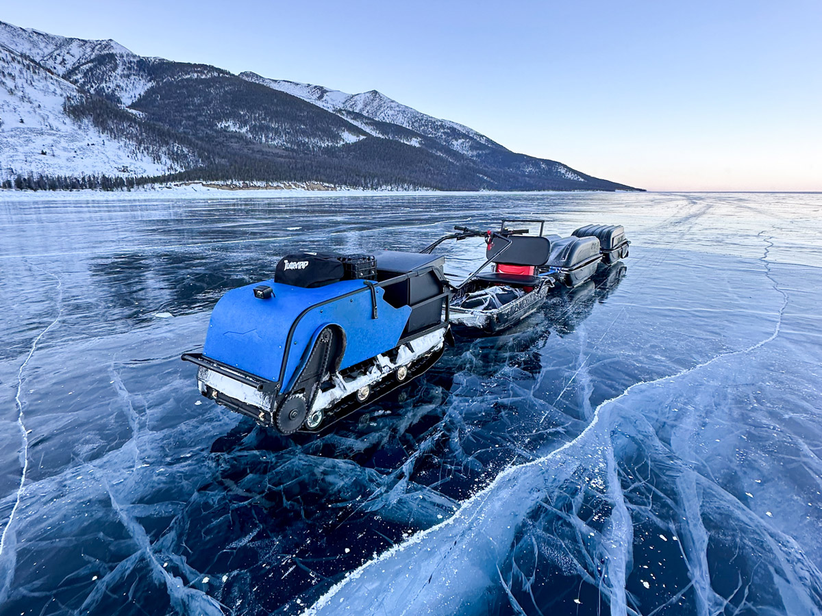 Дело было недавно, на финише сезона, когда ребята из Ютюб-проекта «Снасти здрасьте» получили приглашение от знакомого экстремала из Иркутской области. Суть предложения была в коллективном заезде на мотобуксировщиках через весь Байкал по вертикали. И это было давней мечтой Михаила Левченко (спасибо ему за все эти фото!), оператора, монтажёра «Снастей…». Долго он не раздумывал. Как и его друзья.