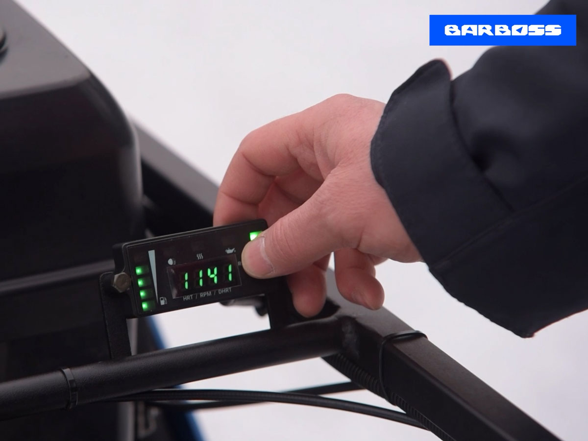 С начала 2021 года она устанавливается на мотособаках Barboss. Панель показывает: уровень топлива (шкала), которое осталось в баке, количество оборотов двигателя, общее время его работы от старта эксплуатации, суточный пробег в моточасах.