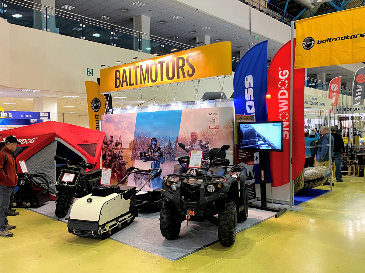 Конечно, для такого отдыха нужен транспорт. Он традиционно также был разнообразно представлен. Красивый стенд Baltmotors стоял выгодно у самого входа, демонстрируя новинки и хиты продаж. Рассказывает менеджер Артём Быстров.