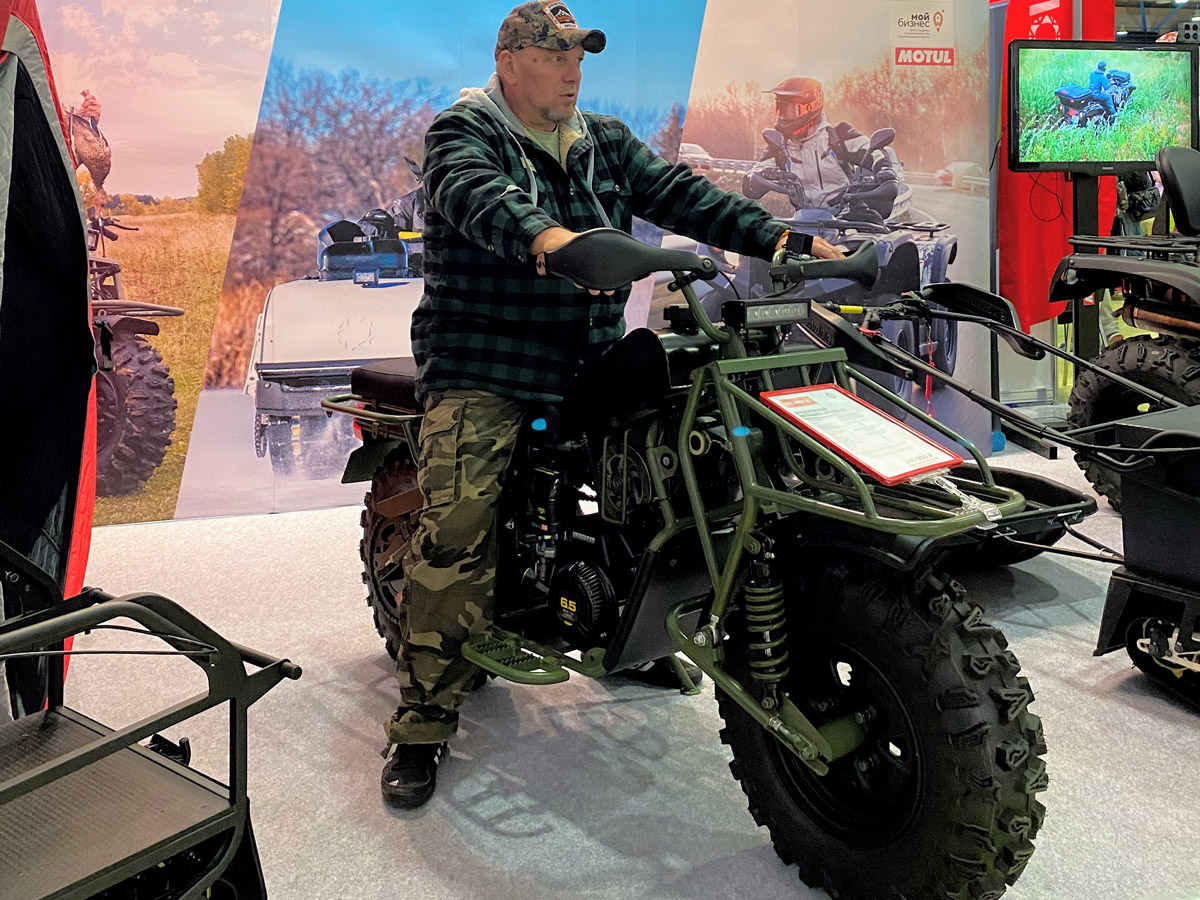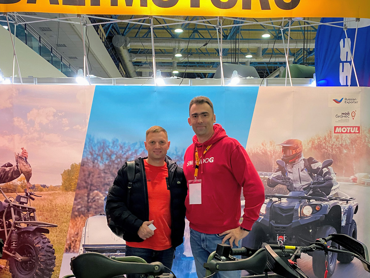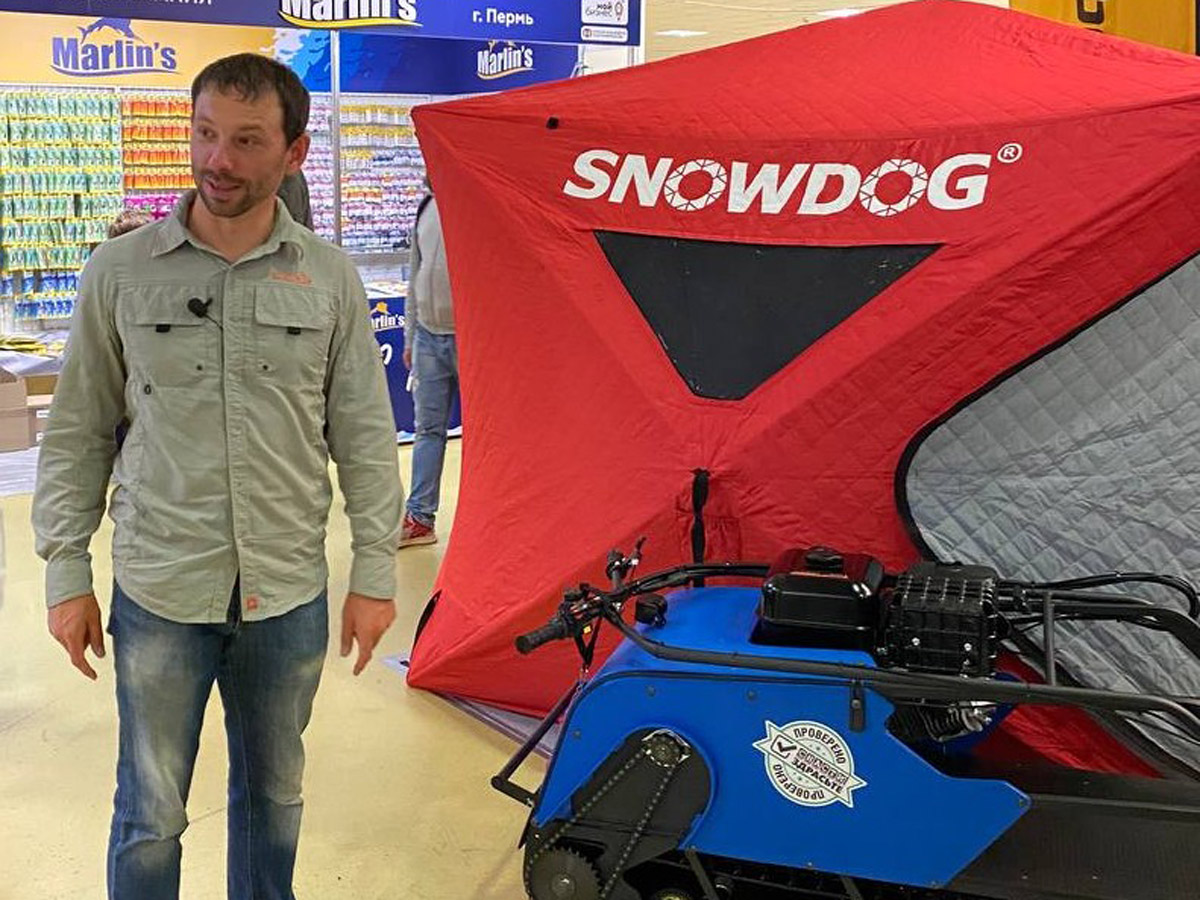 «Мы привезли наши обе самые популярные мотособаки — Barboss и Snowdog Sport. К ним в комплекте для зимней рыбалки отлично идёт наша новая палатка Snowdog Cube: на 4 человека, выдерживает морозы до -20 °С. Также на стенде был внедорожный мотоцикл ATV 2×2 — для брутальных мужчин, которые любят охоту, рыбалку… И, конечно, снова показали наш полноприводный квадрицикл Striker с инжектором, сертифицированный для дорог общего пользования».