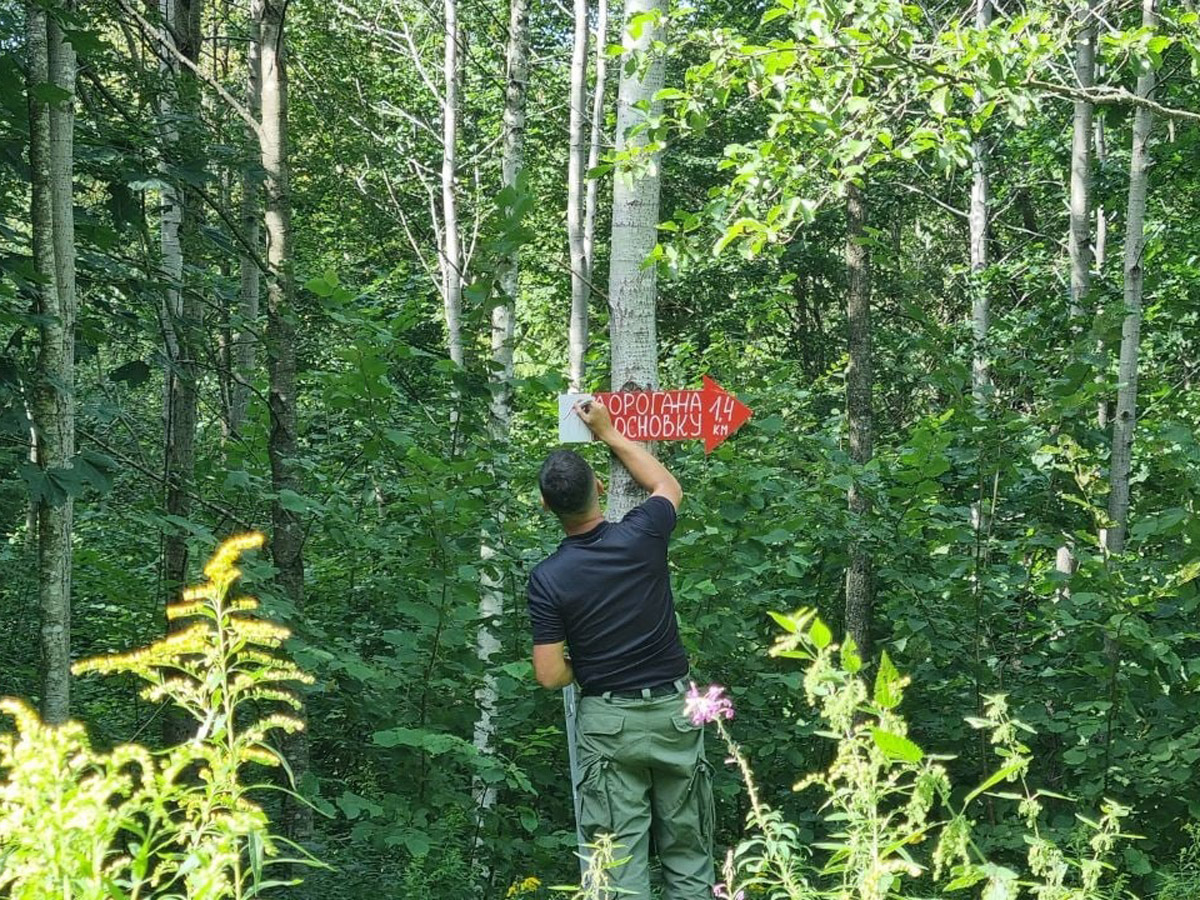 «Люди легко теряются даже в хорошо знакомых лесах. Здесь могут выручить те указатели, которые мы делаем с недавнего времени. В год, как минимум, хотим устанавливать 100 таких стрелок. В этом нам теперь помогает новый квадрицикл. На нём в случае необходимости и эвакуировать человека можно».