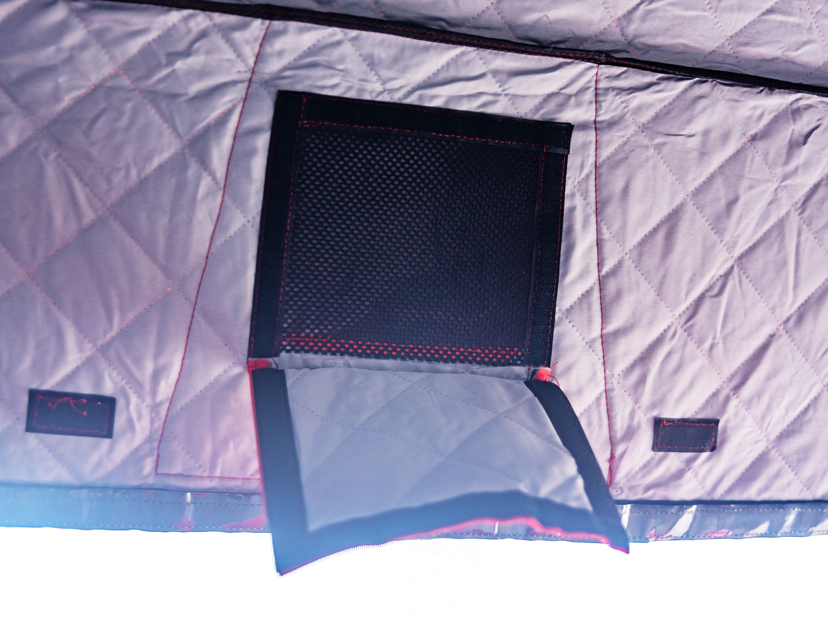- 4 окна из прозрачной плёнки, с москитной сеткой.
