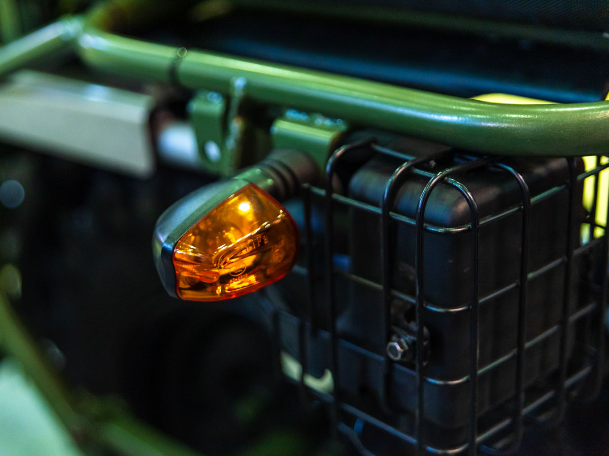 В нашей компании постепенно идёт подготовка к сертификации ATV 2×2 для передвижения по дорогам общего пользования. Поэтому на выставочном экземпляре также был установлен блок переключателей для задействования сигнала поворота и звукового сигнала».