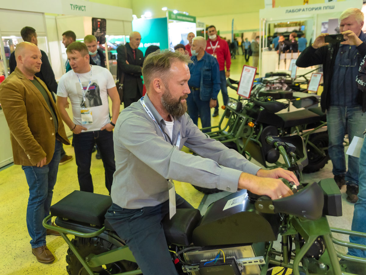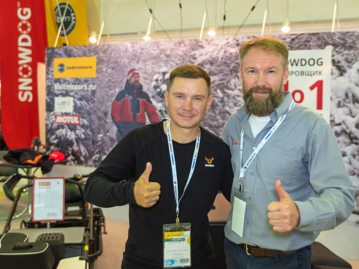 Наш стенд украшали 5 единиц техники. Это 3 мотобуксировщика: Snowdog Utility, Barboss, Snowdog Sport. И два внедорожных мотоцикла ATV 2×2. И любой посетитель сразу видел, что они отличаются. Первый — это обновлённая версия той модели, которую мы начали выпускать весной 2021 года. Прямо на выставке была снята её видеопрезентация с участием Дмитрия Сивкова, руководителя Baltmotors.