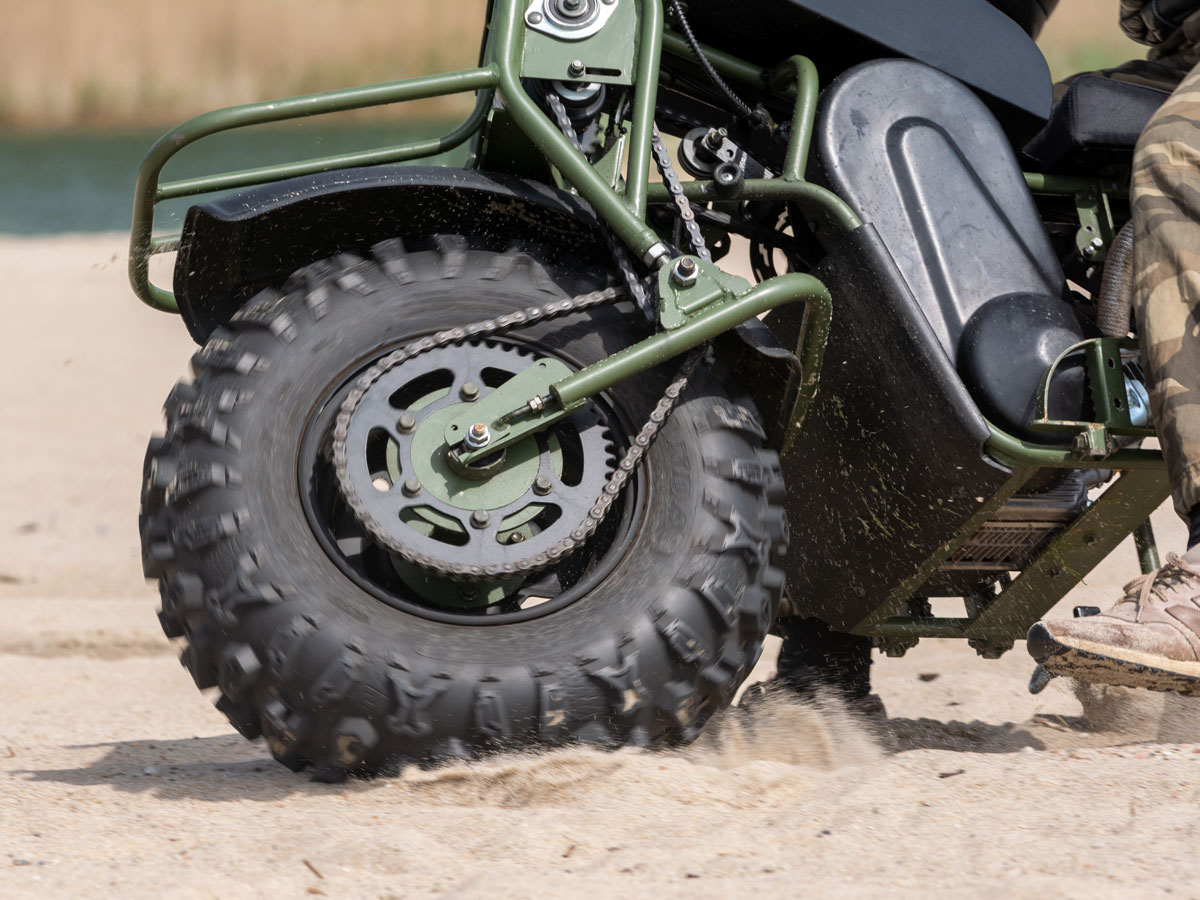 Все препятствия, которые мы задавали мотоциклу, были преодолены без каких-либо проблем, поломок. Это за счёт двух ведущих колёс, облегчённой резины, манёвренности, небольших габаритов. Был момент, когда он сел рамой на бревно. И здесь проявляется ещё одно преимущество — небольшой вес. И тут же пилот своими силами быстро двигает, переставляет мотоцикл и сразу едет дальше. Яркий момент».