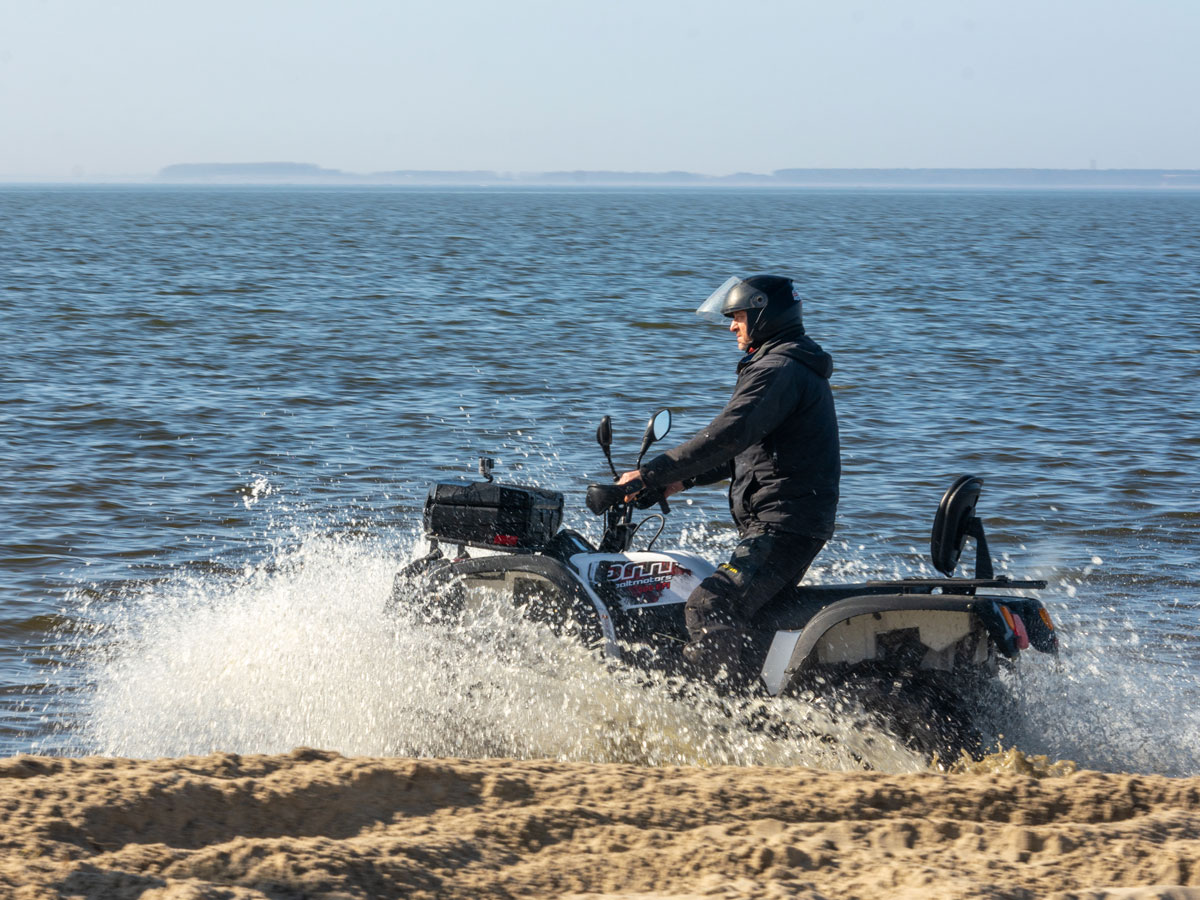 Наши маршруты — довольно разнообразные и сложные: песчаный берег, вода, болота, овраги, грязь, лес, сложные рельефы… Это жёсткие ежедневные условия эксплуатации. Думаю, что ещё примерно год «Страйкеры» продержатся в таком режиме. Для квадриков — это большой пробег. А потом, вероятно, нужен будет капитальный ремонт в части двигателей, коробки.