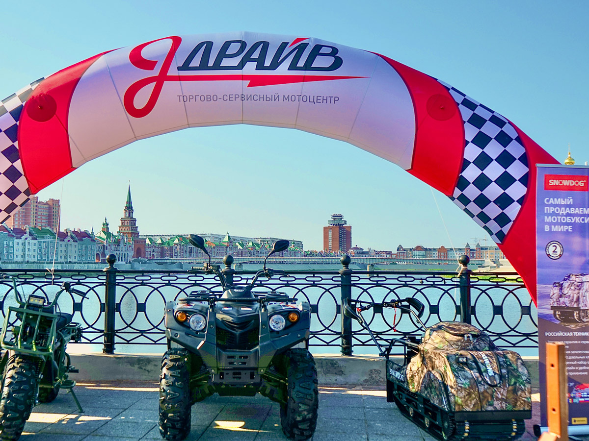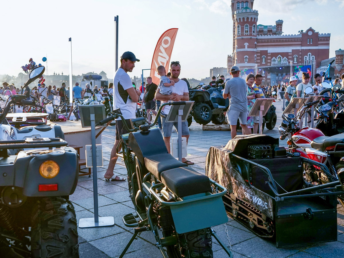 Наш местный дилер, мотосалон «Драйв», на фоне «пряничных домиков» разместил квадрицикл Striker, мотоцикл ATV 2×2 и мотобуксировщик Snowdog Utility. Трудно сказать, что из этого привлекло больше внимания, но интересующихся людей было много в течение всего дня. Всё завершилось, как водится, вкусной трапезой, концертом и фейерверком. Спасибо всем!