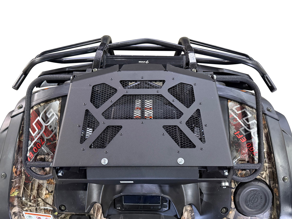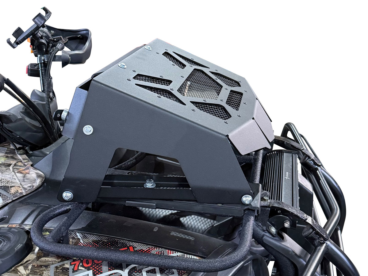 Предназначен для зашиты радиатора и шноркелей при водоподготовке вашего Striker.Выполнен из алюминия толщиной 4 мм с чёрным порошковым покрытием. В комплект входит алюминиевый крашеный каркас и 2 кронштейна крепления к передней багажной площадке.